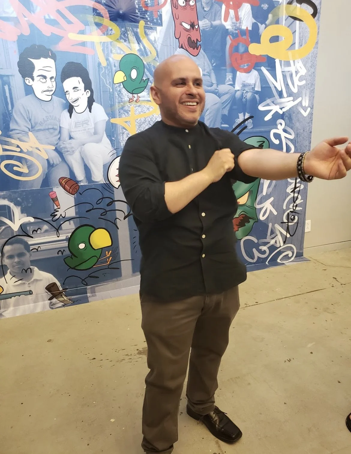 Despite the challenges of his upbringing, Santos found refuge and passion in art. Initially drawn to culinary arts and later transitioning to graphic design, he discovered his true calling in teaching and visual storytelling. Working with students at a Boston alternative high school, Santos uses the language of cartoons and graffiti to connect with his students, many of whom face their own struggles and traumas. His alter ego, Burd, a whimsical parakeet navigating through Juantopia—a world inspired by his Puerto Rican heritage and urban experiences—has become a symbolic representation of hope and resilience.
